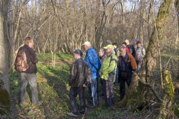 Trotz sehr schönem, jedoch ein wenig windigem Wetter, war die Teilnehmerzahl recht überschaubar. 13 Naturbegeisterte wanderten mit Holger Müller durch den Auwald bei Weißingen und lauschten seinen Erklärungen. Frühblüher, wie Blau- und Gelbstern, Lungenkraut, Veilchen, verwelkte Märzenbecher und die ersten Schlüsselblumen, sowie die Blätter von Bärlauch und Aronstab, waren schon deutlich erkennbar.
